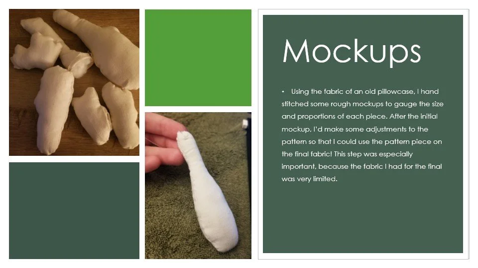 I learned that making a puppet is harder than I thought- I learned so much about fabrics, sewing machine operation, making compromises, adapting on the spot, and creating something that I’ve never even attempted before.